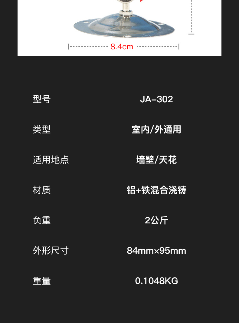 商品名称:监控专用立杆 万向小支架 摄像头支架 302支架安防设备配件